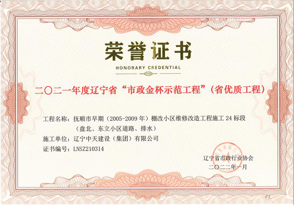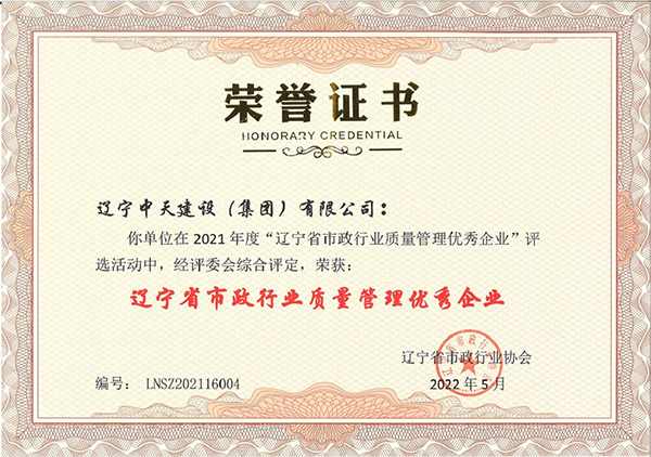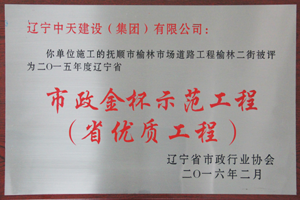 企業先后榮獲“全國優(yōu)秀施工企業”、 “中國AAA級信用企業”、“全國保障性安居工程建設勞動競賽先進單位”、“遼寧省最受尊敬企業”、“遼寧省優(yōu)秀建筑業企業”、“遼寧省工程建設質量管理優(yōu)秀企業”、 “遼寧省守合同、重信用企業”、遼寧省“AAA級信用企業”、 “撫順市安全生產先進單位、紅旗單位”、“撫順市安康杯競賽先進集體”等多項殊榮。